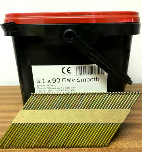 90 x 3.1mm Collated smooth Shank Nails - Trade Pack (2000) 2 fuel cells
