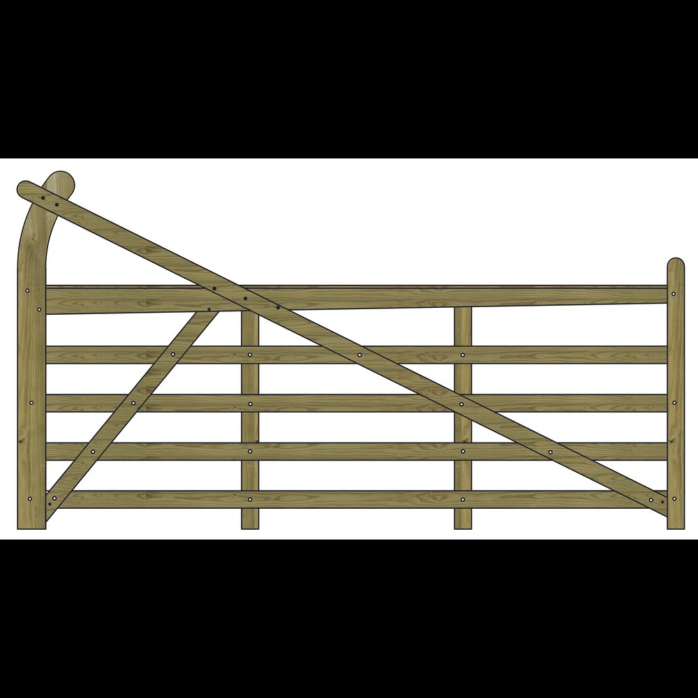 Estate 5 Bar gates under 4’6‘’ wide will not have the extended stile and cross brace as standard.