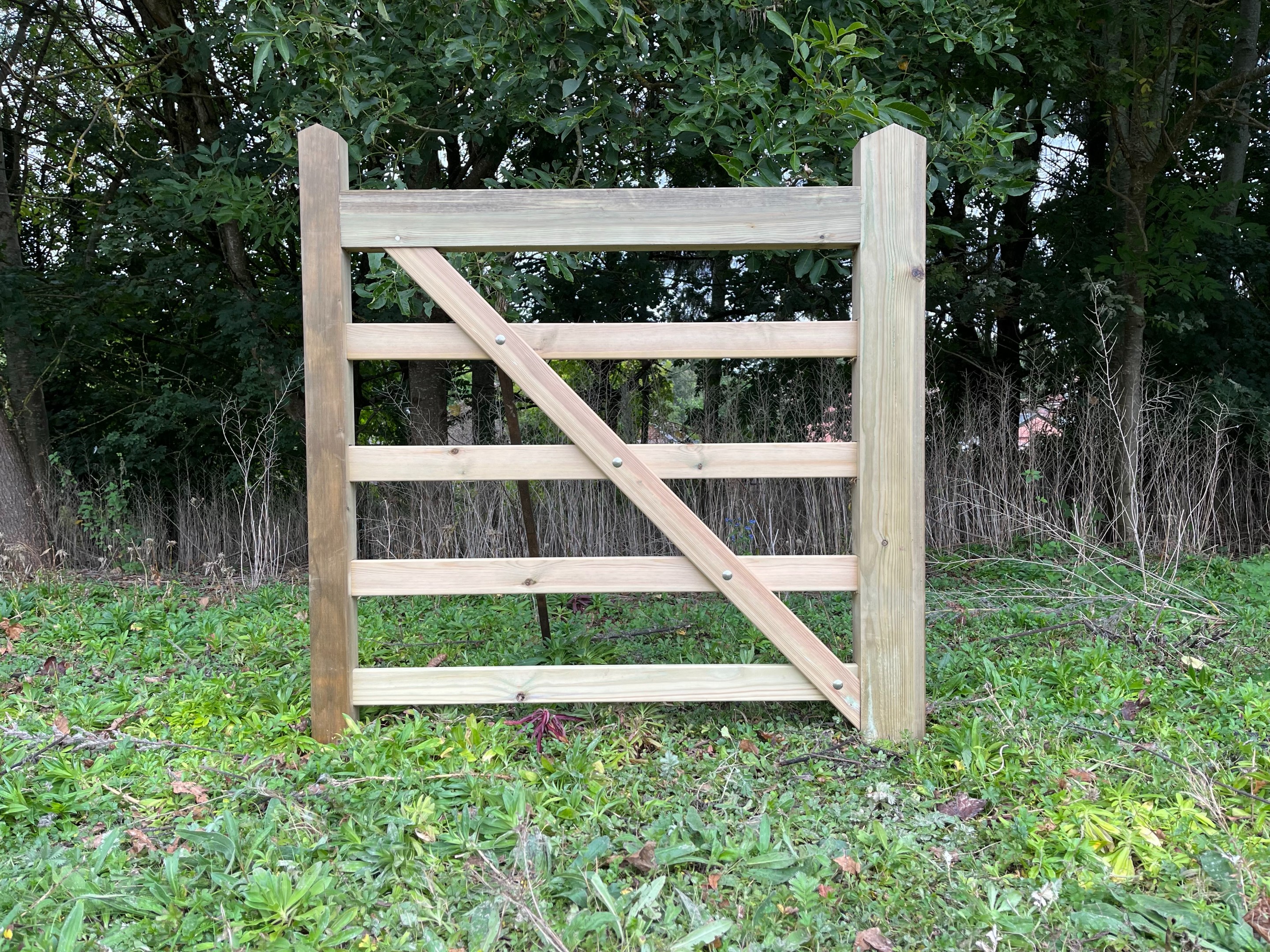 Image shows a left hand hanging 3'6 wide gate. The 4'0 gate is also single brace
