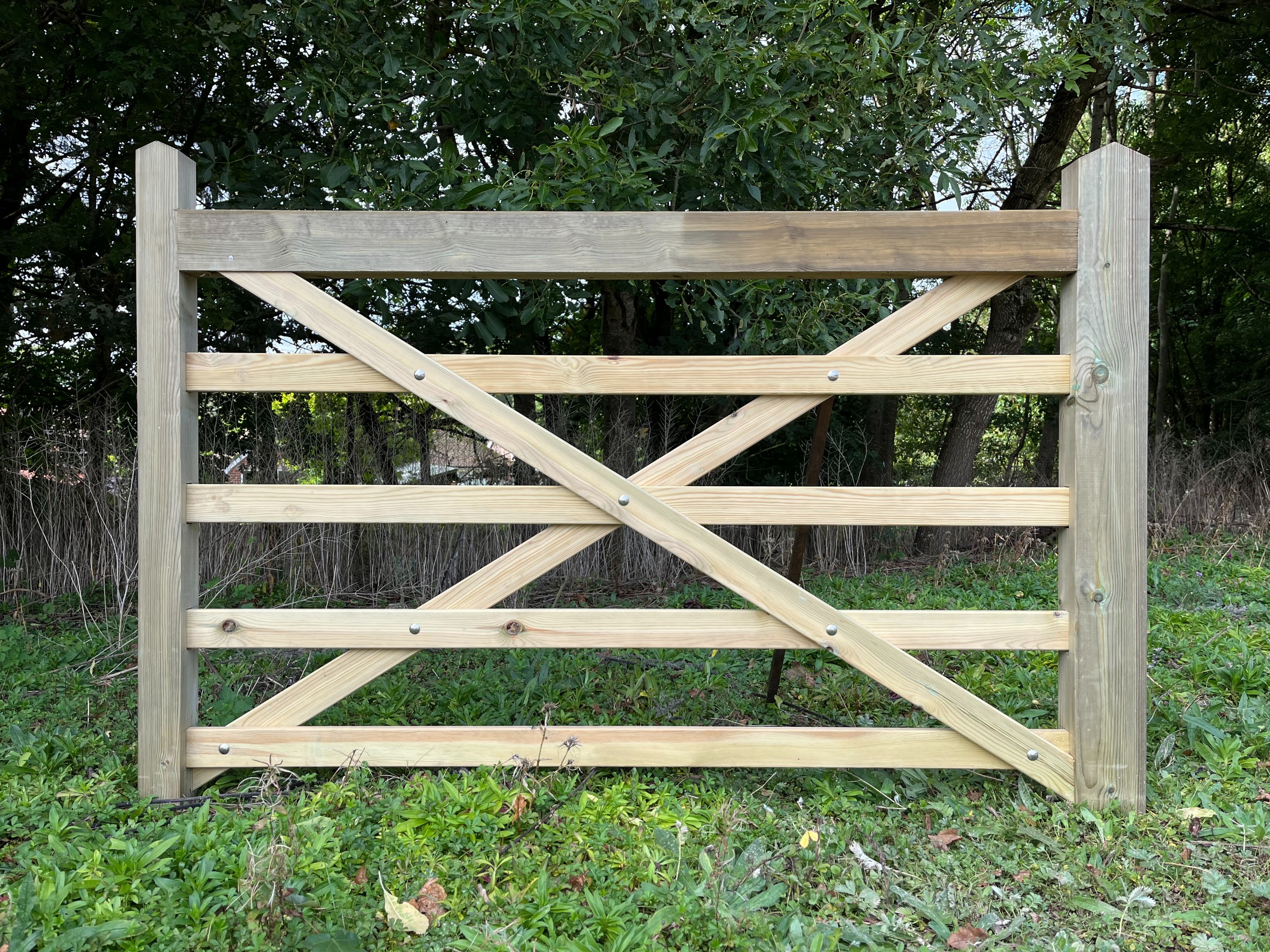 Image shows a left hand hanging 5'0 wide gate. The 6'0 gate is also a diamond brace gate